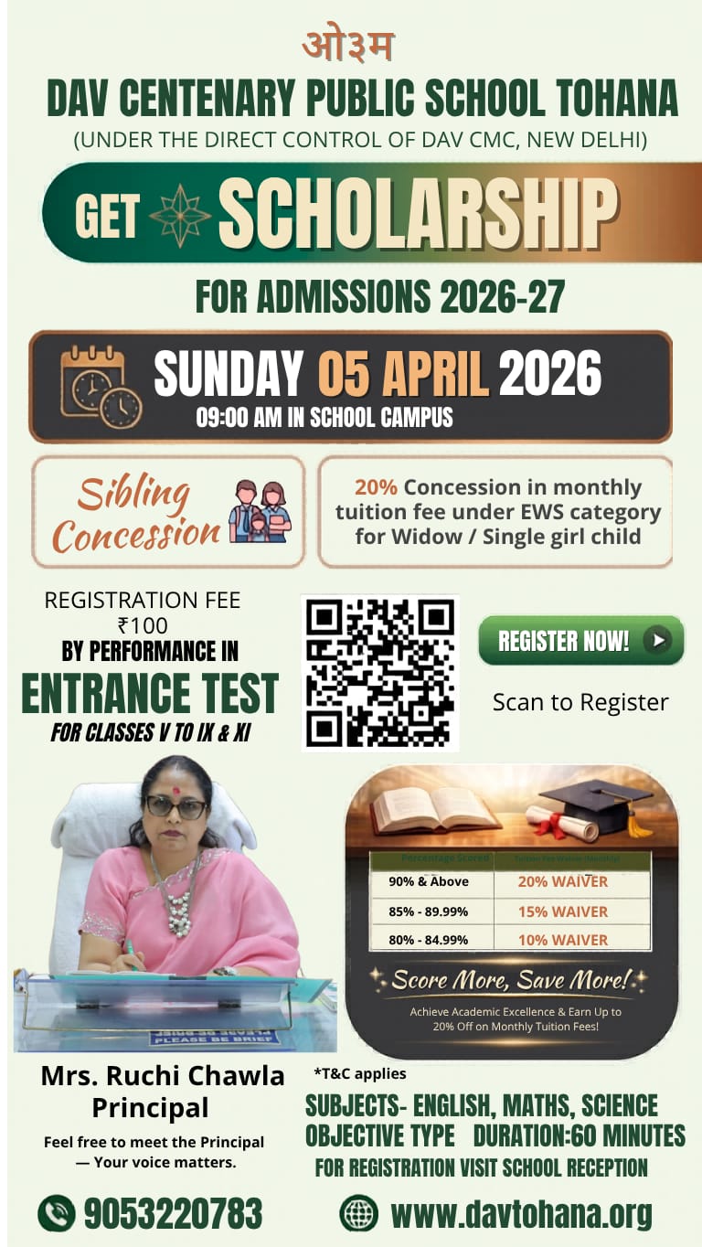DAV CENTENARY PUBLIC SCHOOL, Dangra Road, Tohana, Fatehabad, Haryana-125120. Ph.No.: 9053220783 Email ID: [email protected]